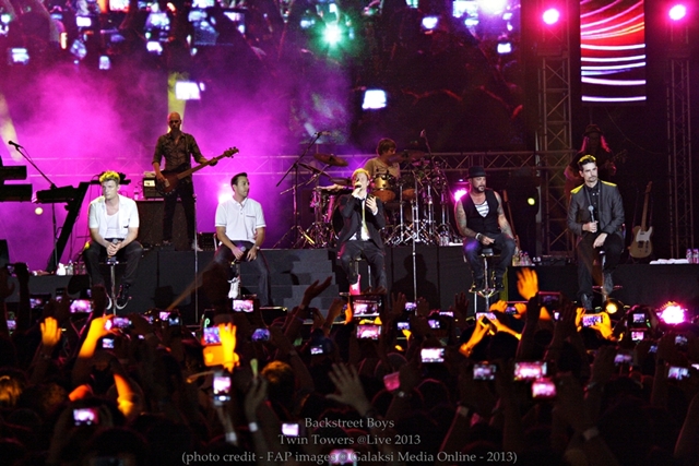 Backstreet Boys merupakan kumpulan vocal harmoni yang ditubuhkan di Orlando, Florida. Ahli kumpulannya terdiri daripada A. J. McLean, Howie Dorough, Nick Carter, Kevin Richardson & Brian Littrell. Kemunculan mereka pada The Twin Towers @Live 2013 merupakan persembahan mereka yang pertama setelah bergabung semula sempena Live Tour mereka pada tahun ini serta dalam rangka mempromosikan album terbaru sempena 20 tahun penubuhan Backstreet Boys.