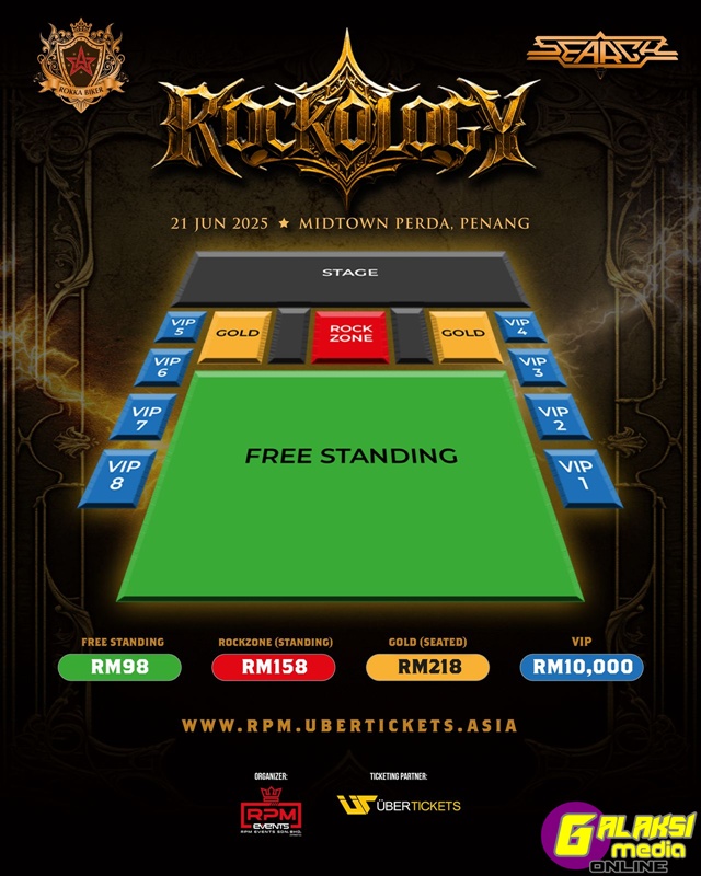 Tiket untuk Rockology Concert Tour 2025 – North Chapter kini telah mula dijual di laman web https://rpm.ubertickets.asia/ dengan harga mampu milik bermula serendah RM98. Kami mahu pastikan konsert ini dapat dinikmati oleh semua golongan peminat muzik rock tanah air, tanpa mengira latar belakang. Ini adalah peluang untuk rakyat Malaysia menyaksikan gabungan legenda rock seperti Dato’ Awie dan Search (Kid Din) dalam satu pentas bersejarah.