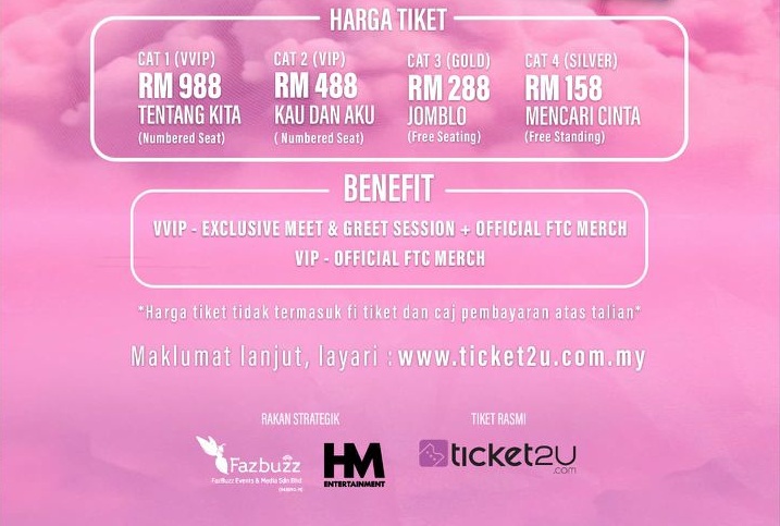 - Kategori 1 (VVIP) – RM988 – Tentang Kita (Tempat duduk bernombor)