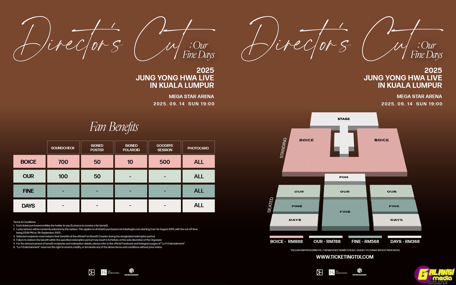 Konsert bertajuk 2025 JUNG YONG HWA LIVE ‘Director’s Cut: Our Fine Days’ di Kuala Lumpur dianjurkan oleh Lo-Fi Entertainment ini akan berlangsung di Mega Star Arena, KL pada 14 September 2025 (Ahad), jam 7 malam.
