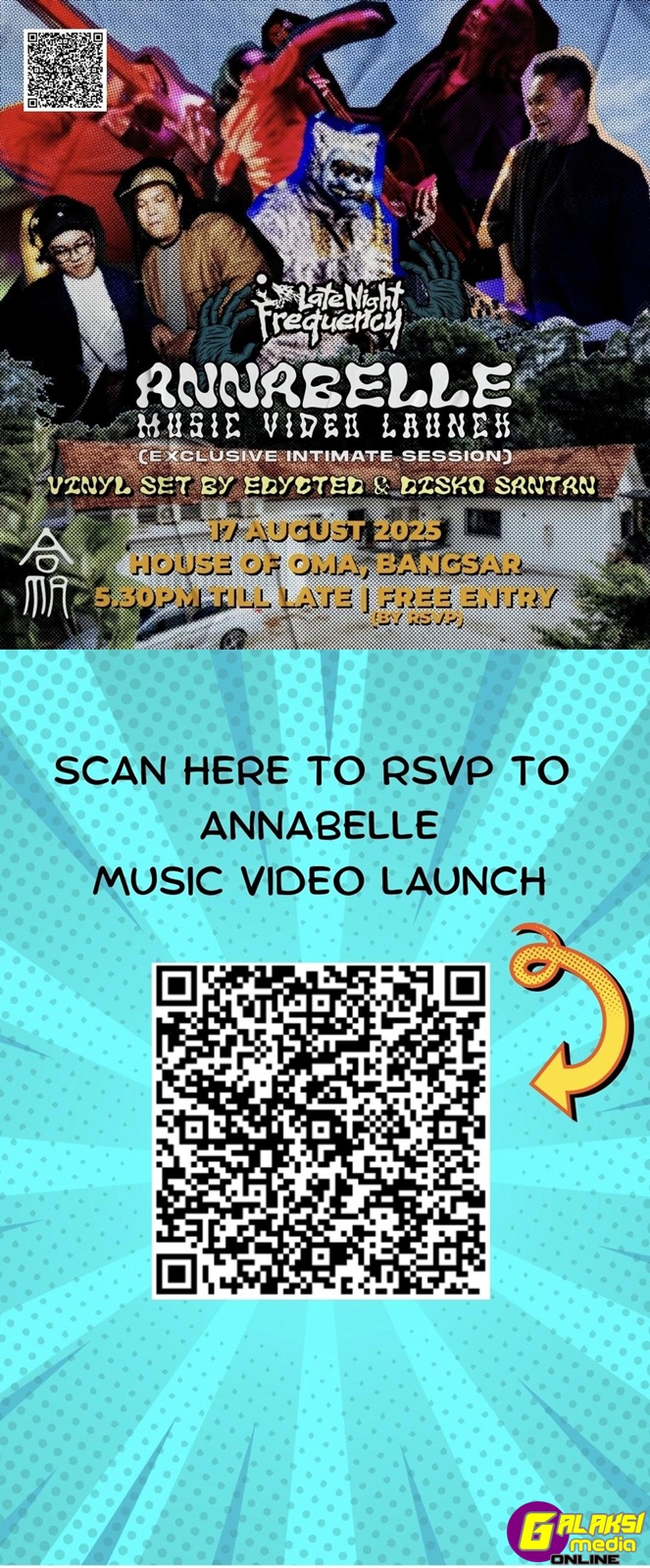 Peminat dijemput menghadiri pelancaran eksklusif dan intim “Annabelle” di House Of Oma. Turut memeriahkan acara ialah Disko Santan dan DJ Edycted yang akan memutarkan vinyl House, Disco, dan Techno sepanjang malam. Masuk adalah percuma — imbas kod QR untuk RSVP.