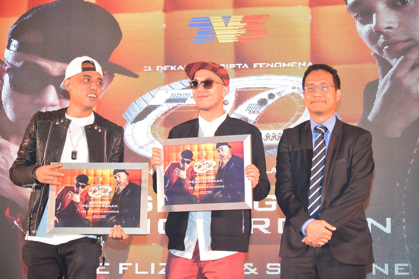Joe Flizzow & SonaOne diberikan anugerah ikon AJL oleh Encik Ahmad Izham Omar, CEO TV Networks, MPB