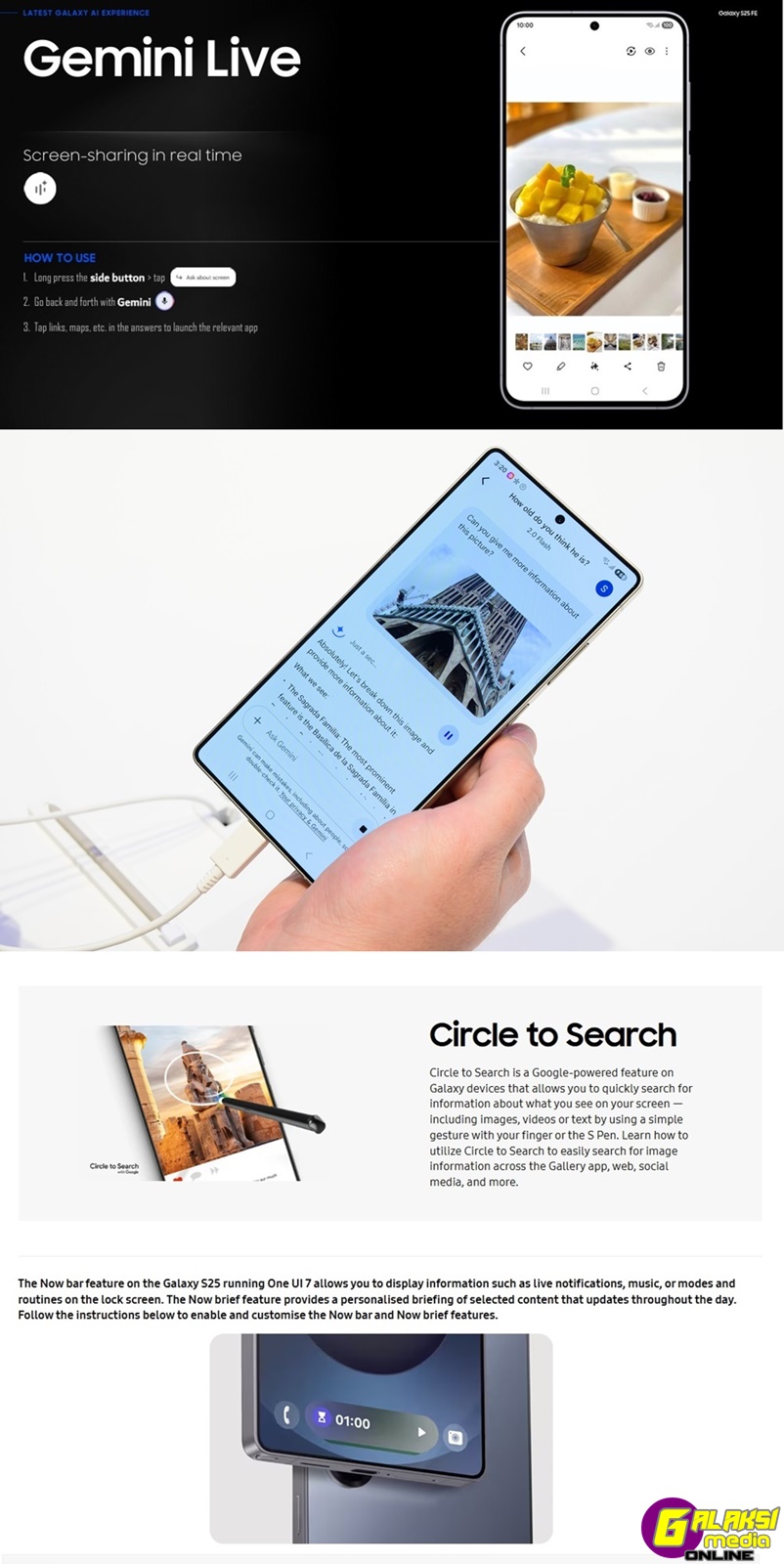 Galaxy S25 FE bukan sekadar telefon pintar biasa – ia adalah teman AI peribadi. Dengan sokongan Gemini Live, pengguna boleh berinteraksi secara masa nyata dengan AI multimodal yang memahami suara, sentuhan dan imej. Ciri seperti Now Bar dan Now Brief pula memastikan maklumat harian sentiasa diakses dengan mudah, manakala Circle to Search memudahkan carian pintar hanya dengan melingkari skrin.
