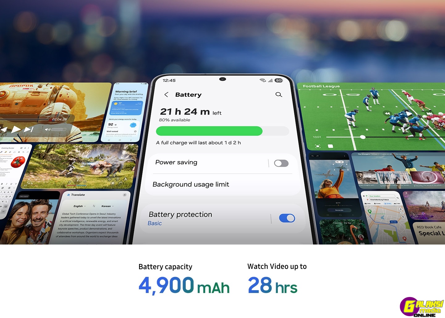 Dikuasakan bateri 4,900mAh dengan sokongan pengecasan pantas 45W berwayar, Galaxy S25 FE mampu bertahan seharian dengan selesa. Ia turut dilengkapi ruang wap (vapor chamber) lebih besar untuk kawalan haba yang lebih baik, memastikan prestasi konsisten walaupun digunakan untuk bermain game atau multitugas.