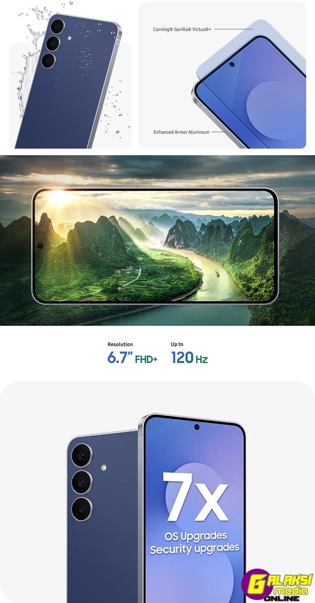 Peranti ini menampilkan rekaan nipis, ringan dan premium dengan rangka Armor Aluminum yang tahan lasak. Skrin Dynamic AMOLED 2X 6.7 inci dengan kadar segar semula 120Hz memberikan visual mengagumkan. Ditambah pula dengan 7 generasi naik taraf OS dan 7 tahun kemas kini keselamatan, Galaxy S25 FE jelas direka untuk bertahan lama.