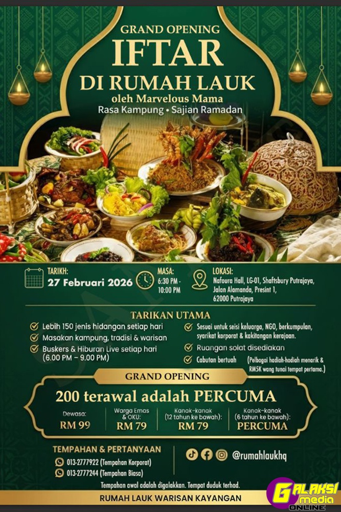 Putrajaya, 28 Februari 2026 – Sempena Ramadan yang penuh keberkatan, Marvelous Mama Sdn Bhd mempersembahkan Pembukaan Iftar di Rumah Lauk, sebuah pengalaman bufet Ramadan berkonsepkan masakan kampung dan warisan yang akan berlangsung di Nafoura Hall, LC-01, Shaftsbury Putrajaya. Syarikat juga akan mengumumkan perancangan pembukaan restoran tetap Rumah Lauk di Kuala Lumpur pada penghujung April ini, diikuti dengan pembukaan restoran dengan jenama yang sama di London dan Jakarta pada tahun ini juga.