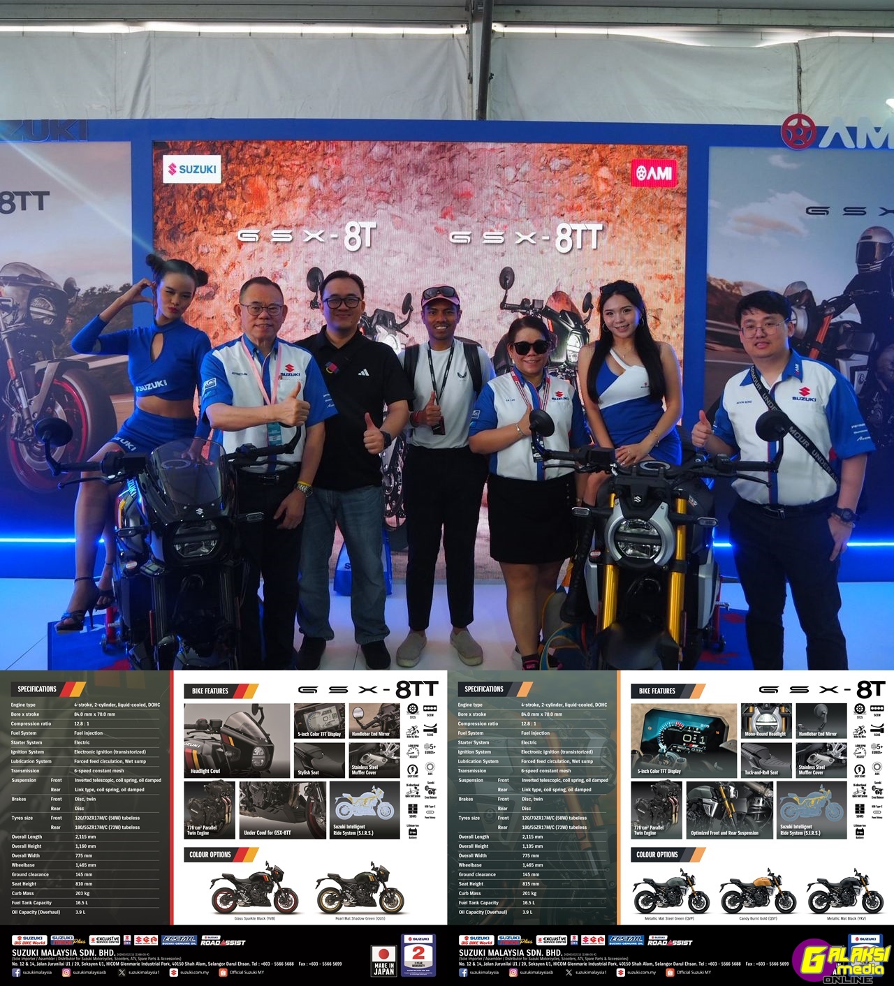 Sepang, 6 Oktober 2025 (Ahad) — Suzuki Malaysia Sdn. Bhd. hari ini memperkenalkan dua model motosikal terbaharu, Suzuki GSX-8T dan Suzuki GSX-8TT, bertempat di Booth D02, Litar Antarabangsa Sepang, bersempena hujung minggu perlumbaan MotoGP Malaysia 2025.